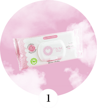 En un solo gesto, la toallita íntima limpia suavemente y deja un perfume agradable de almizcle blanco.